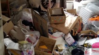 もう誰も住んでいないが人に貸すこともせずそのままにしてきた空き家を処分する前に中の家財整理をすることにした男性から依頼を受けました。都内で仕事をされており、なかなか家を片付けに行くことができないので今回は立ち合い無しで私たちの方で家財整理を行うことになりました。ビフォーアフターの写真が必要ということで片付ける前にまず写真を撮りました。処分することになった家財は古い箪笥や畳、照明器具や絨毯などで2日かけて片付け最後にまた写真を撮って依頼人に送り完了しました。
