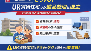 マンション・団地の遺品整理 どうする?UR賃貸住宅での遺品整理と退去|民間賃貸と違う手続きの進め方 UR賃貸住宅で入居者が亡くなった場合の遺品整理と退去手続きを解説。URへの連絡方法、残置物(家財)の扱い、退去までの流れなど、民間賃貸との違いを分かりやすくまとめています。団地住宅での搬出や整理のポイントも紹介しています。 2026.03.07 マンション・団地の遺品整理