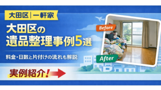 一軒家の遺品整理 品川区の一軒家(戸建て)の遺品整理事例5選|料金・日数と片付けの流れも解説 品川区の一軒家(戸建て)の遺品整理事例を5つ紹介。実際にかかった料金や作業日数、片付けの流れを具体的に解説します。実家整理や空き家の家財処分、退去前の片付けを検討している方にも参考になる内容です。 2026.03.06 一軒家の遺品整理