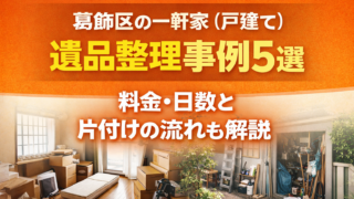 一軒家の遺品整理 葛飾区の一軒家(戸建て)の遺品整理事例5選|料金・日数と片付けの流れも解説 葛飾区で一軒家(戸建て)の遺品整理を行った実際の事例を5つご紹介します。作業人数・日数・料金の目安や片付けの流れも具体的に解説。実家の整理や売却・解体前の片付けなど、戸建てで多いご相談の進め方がわかります。 2026.03.14 一軒家の遺品整理