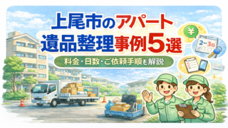 アパートの遺品整理 上尾市のアパート遺品整理事例5選|料金・日数・ご依頼手順も解説 上尾市でアパートの遺品整理をご検討中の方へ。パートの場合、退去期限が決まっていることが多く、「何日かかるのか」「いくら位かかるのか」「立ち会えないが大丈夫か」といったご相談をよくいただきます。階段搬出や駐車スペースの条件、管理会社とのやり取... 2026.02.27 アパートの遺品整理桶川市の遺品整理チーム