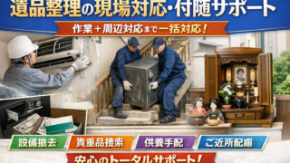 遺品整理というと「不用品を処分する作業」と思われがちですが、実際の現場ではそれだけでは完結しません。貴重品や重要書類の探索、思い出品の仕分け、分別・搬出、清掃、そして退去手続きまで、複数の工程を組み合わせて進めていきます。