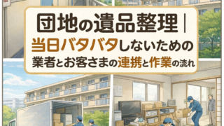 マンション・団地の遺品整理 団地の遺品整理|当日バタバタしないための業者とお客さまの連携と作業の流れ 団地(UR・都営・県営住宅)の遺品整理では、事前の連携や準備不足によって当日作業が止まるケースがあります。本記事では、当日バタバタしないための進め方として、お客さまと業者の役割分担と実際の作業の流れを分かりやすく解説します。 2026.04.05 マンション・団地の遺品整理