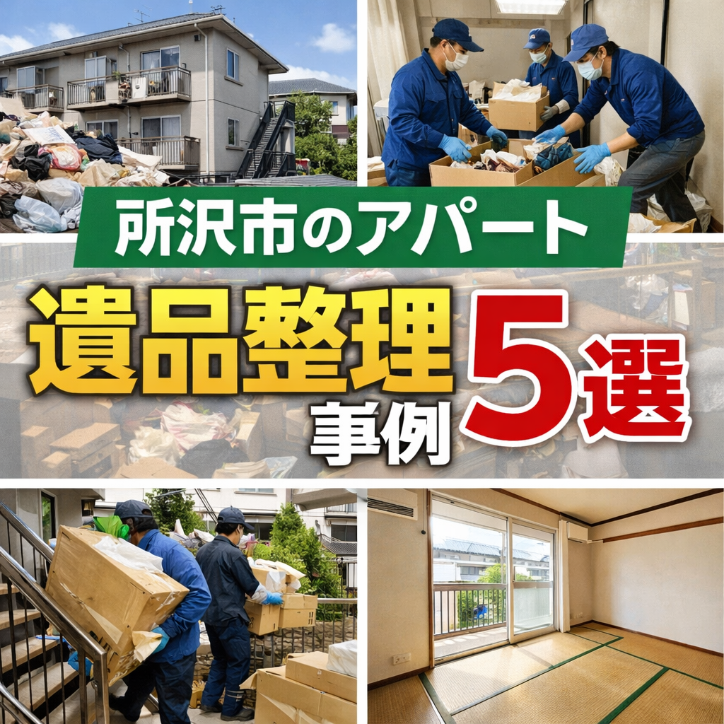 所沢市でアパートの遺品整理を検討されている方へ。賃貸物件では退去期限や管理会社との調整が伴い、戸建てとは進め方が異なります。本ページでは、1K・1DK・2DKの実例をもとに、料金と日数の目安、立ち会いなし対応や階段搬出のポイントまで整理しました。実際の流れを具体的にご確認いただけます。