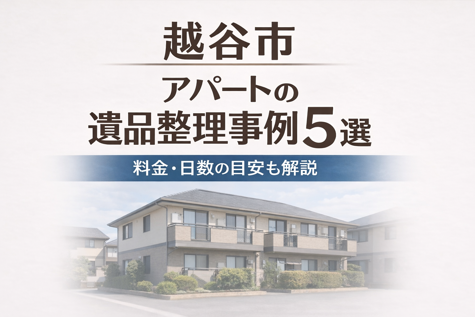 越谷市でアパートの遺品整理を行う場合、料金や日数は間取りだけで決まるものではありません。同じ1Kでも家財量や確認工程によって作業規模は変わります。本ページでは、越谷市内のアパート事例5選をもとに、料金の目安と日数、そして金額が変わる理由を整理しました。数字だけでなく、条件差による違いを具体的にご確認いただけます。