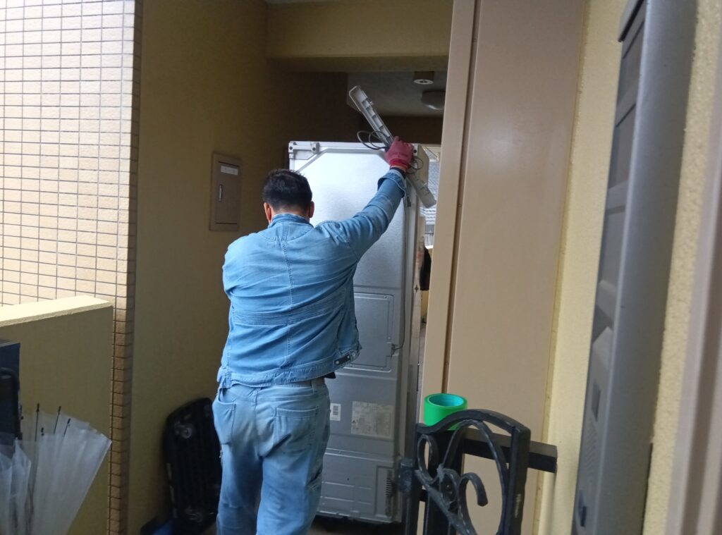 管理会社への事前連絡後、エレベーター養生を行い搬出。