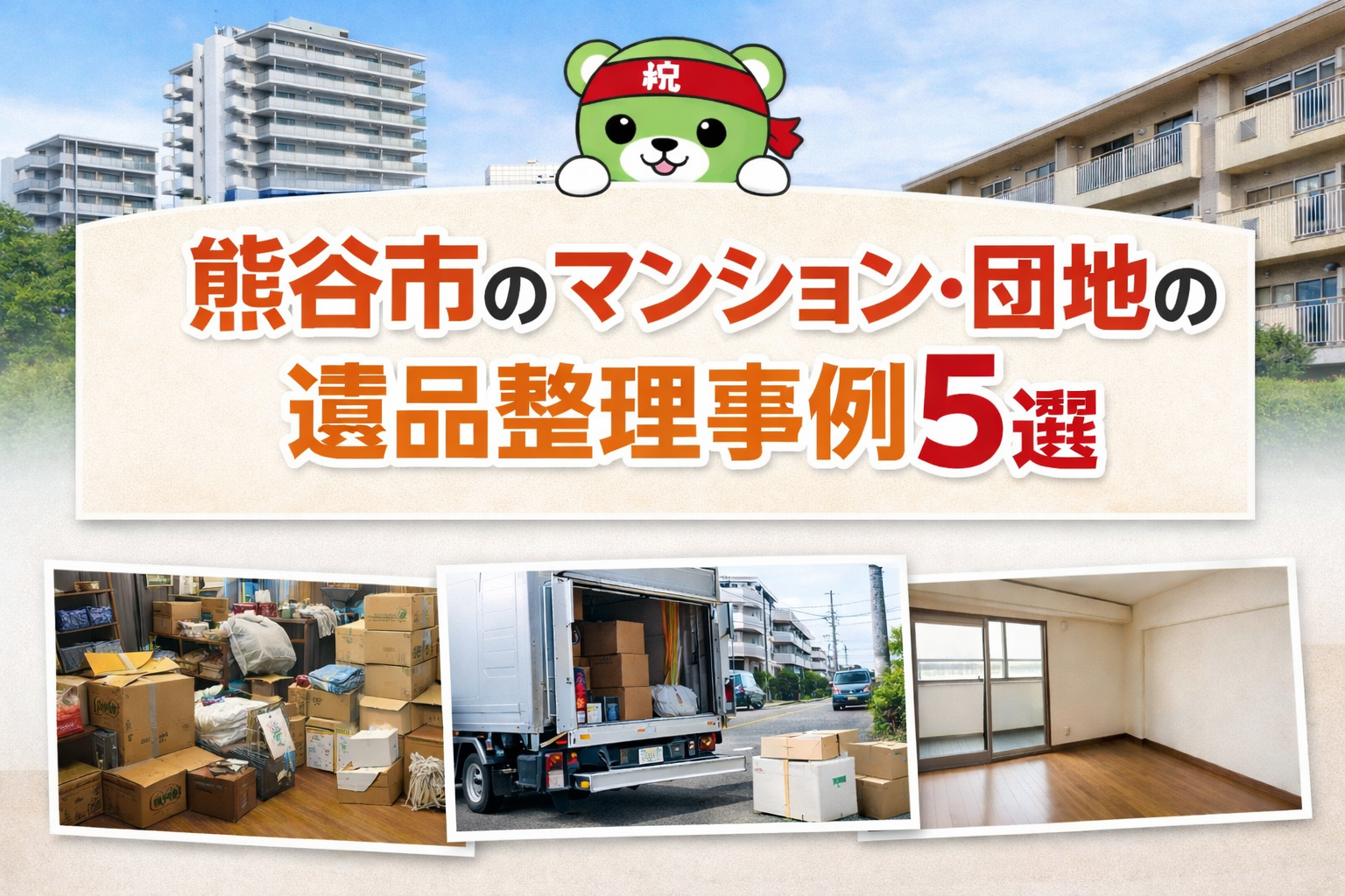 本ページでは、熊谷市内で実際に対応したマンション・団地の遺品整理事例を5つご紹介しながら、料金の目安・作業日数・ご依頼から完了までの流れを分かりやすくまとめました。