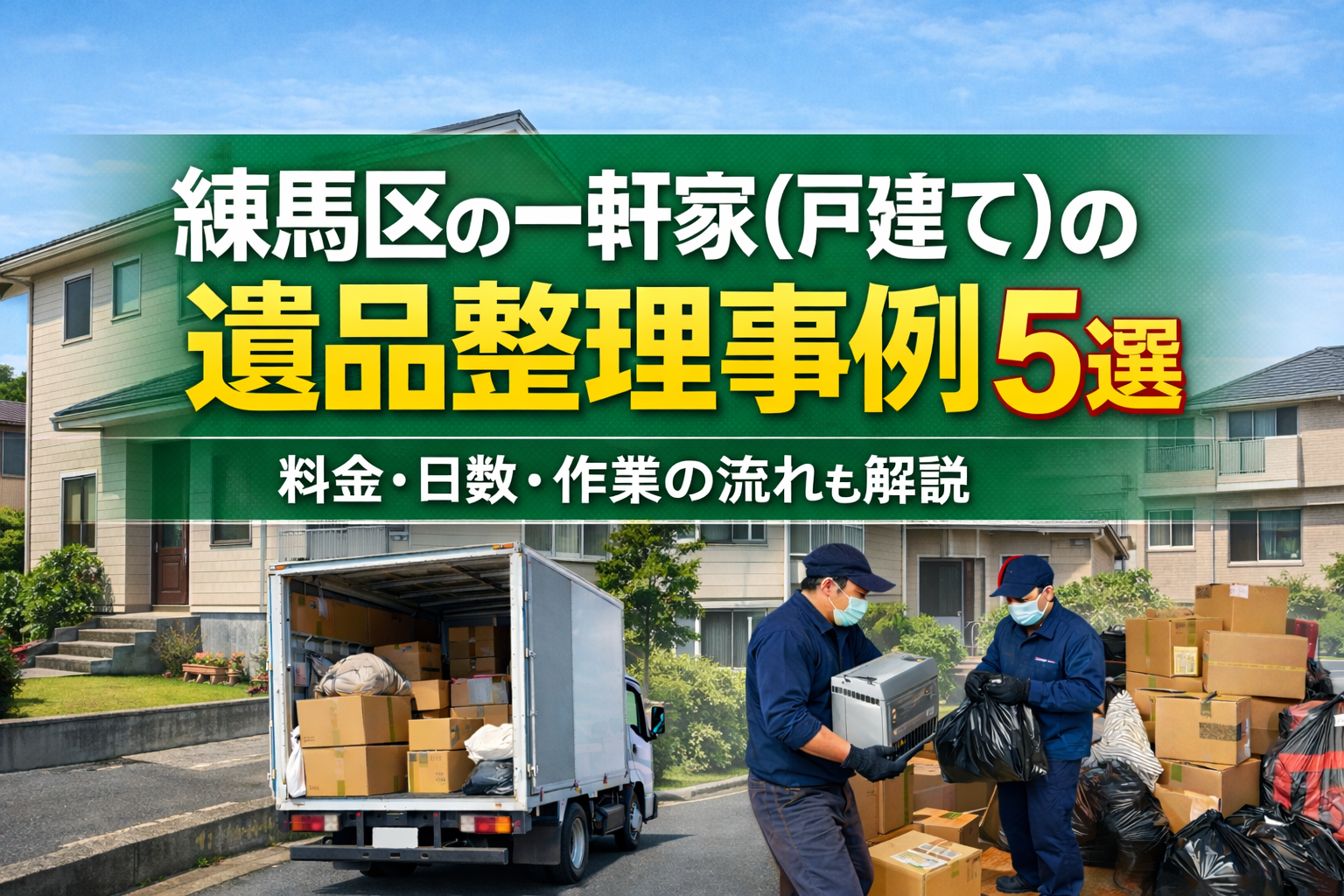 練馬区で一軒家(戸建て)の遺品整理をご検討中の方へ。本ページでは、実際に対応した戸建て事例をもとに、料金の目安や作業日数、作業・完了までの流れを具体的にご紹介しています。
