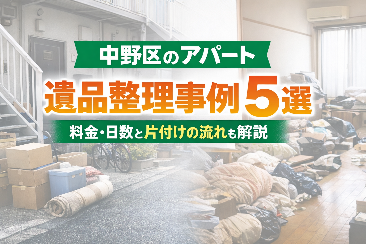 中野区でアパートの遺品整理をご検討中の方へ。本ページでは、実際に対応したアパート事例をもとに、料金の目安や作業日数、片付けから完了までの流れを具体的にご紹介しています。