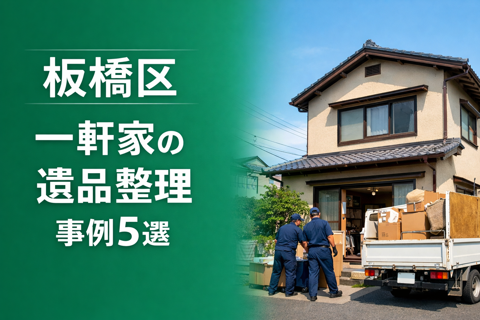 ここでは、板橋区で実際に行った一軒家(戸建て)の遺品整理について、料金・作業日数・片付けの流れが分かる形で5つの事例をご紹介します。