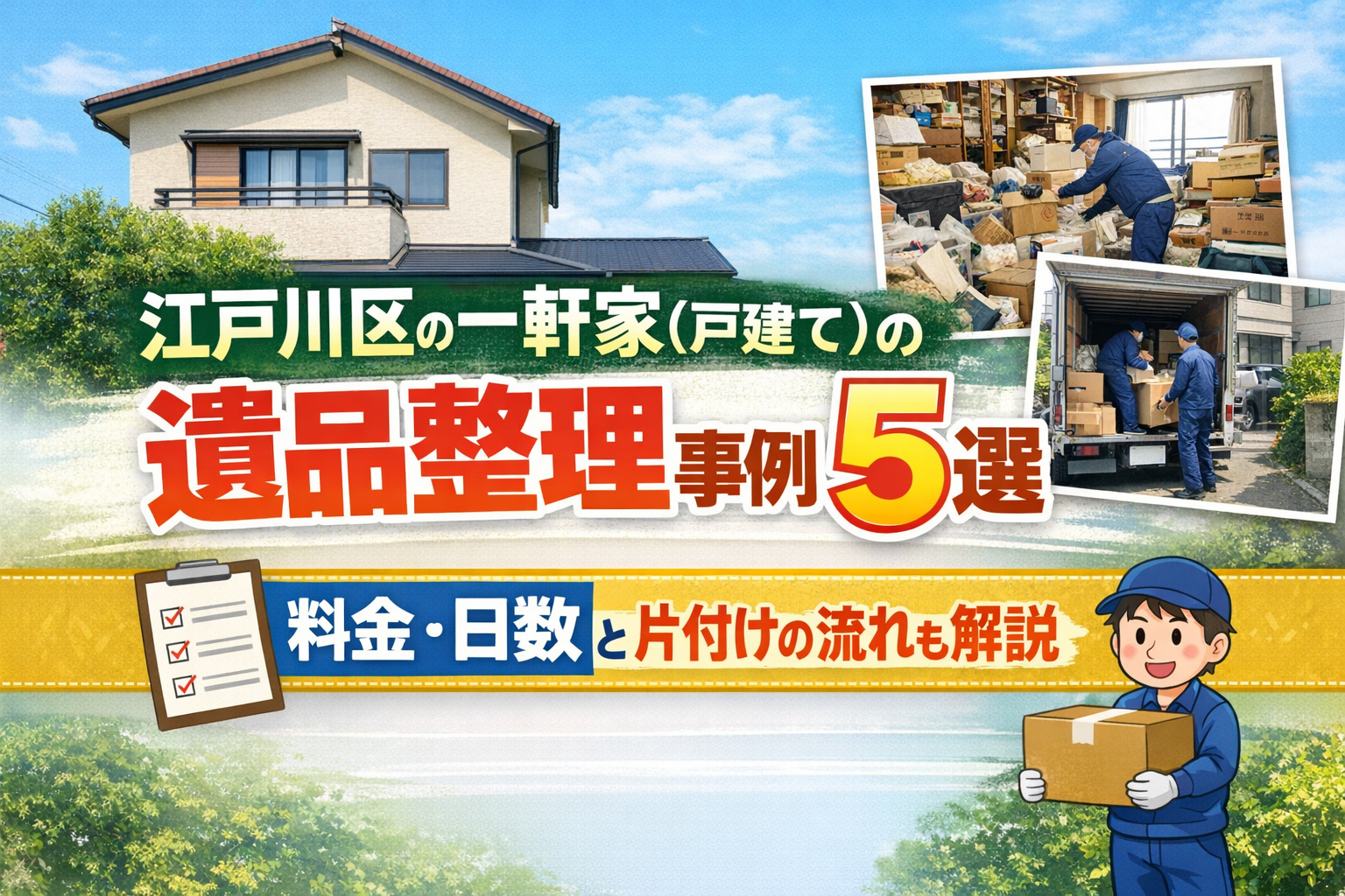 このページでは、江戸川区の一軒家で実際に行った遺品整理の事例を5つご紹介します。料金や作業日数の違いだけでなく、どのような流れで片付けが進んだのかもあわせて解説していますので、ご自身の状況に近いケースを見つける参考にしてください。