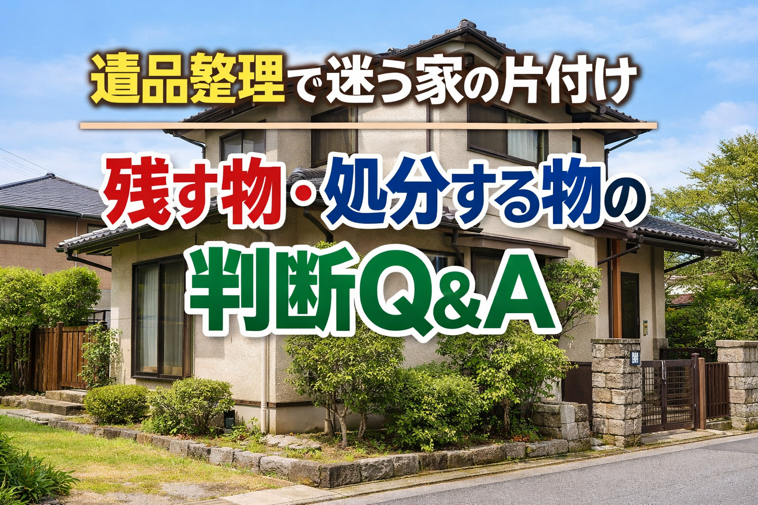 遺品整理を進める中で、「何を残していいのか」「どこまで処分してよいのか」と迷う場面は多くあります。特に一軒家の場合は、室内の家財だけでなく、物置や庭まわり、設備など判断が必要な範囲が広く、自己判断で進めてしまうと売却時のトラブルにつながることもあります。