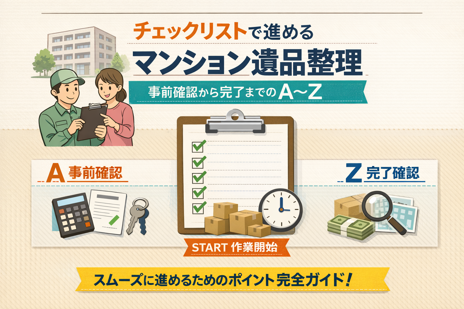 マンションの遺品整理では、進め方や注意点を事前に知っておくことで、無理なくスムーズに進めることができます。