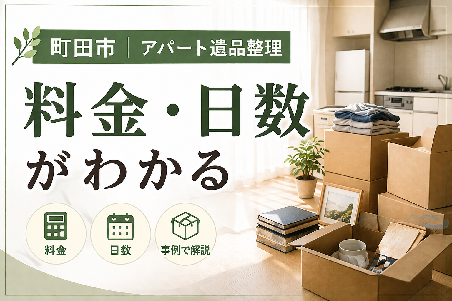 このページでは、町田市で行ったアパートの遺品整理事例をもとに、実際の料金目安、作業日数、作業の流れをわかりやすくご紹介します。